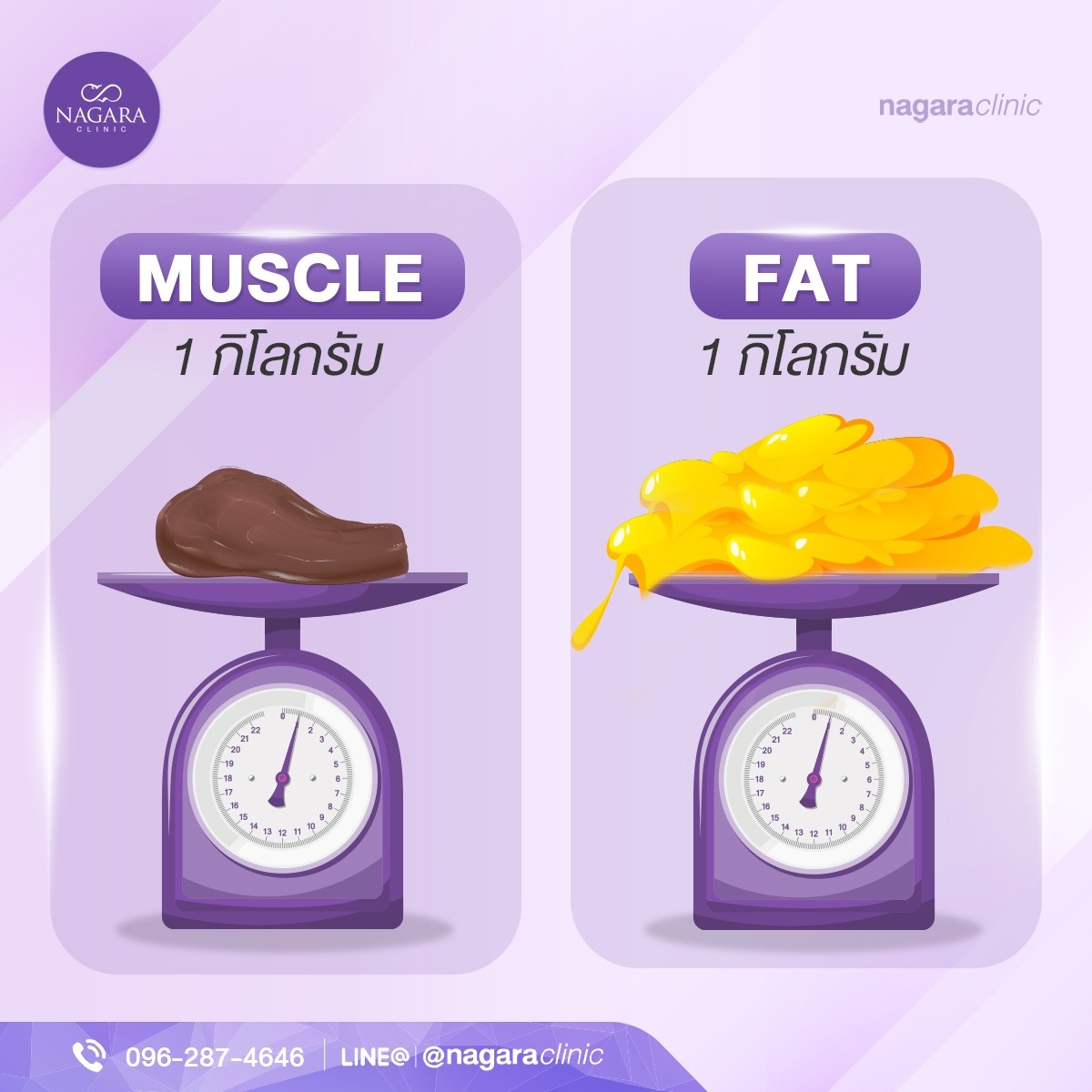 ยกตัวอย่างเช่น เรามีมวลไขมัน และ มวลกล้ามเนื้อในปริมาณที่เท่ากัน 1 กก. แต่ปริมาณไขมันจะขยายขนาดใหญ่ขึ้น เมื่อเราอ้วนขึ้น และเล็กลงเมื่อเราผอมลง การโฟกัสที่การลดน้ำหนักเพียงอย่างเดียว ส่วนที่หายไปอาจจะมีทั้งกล้ามเนื้อ น้ำ รวมทั้งเซลล์ไขมันที่ลดขนาดลงเท่านั้นเอง